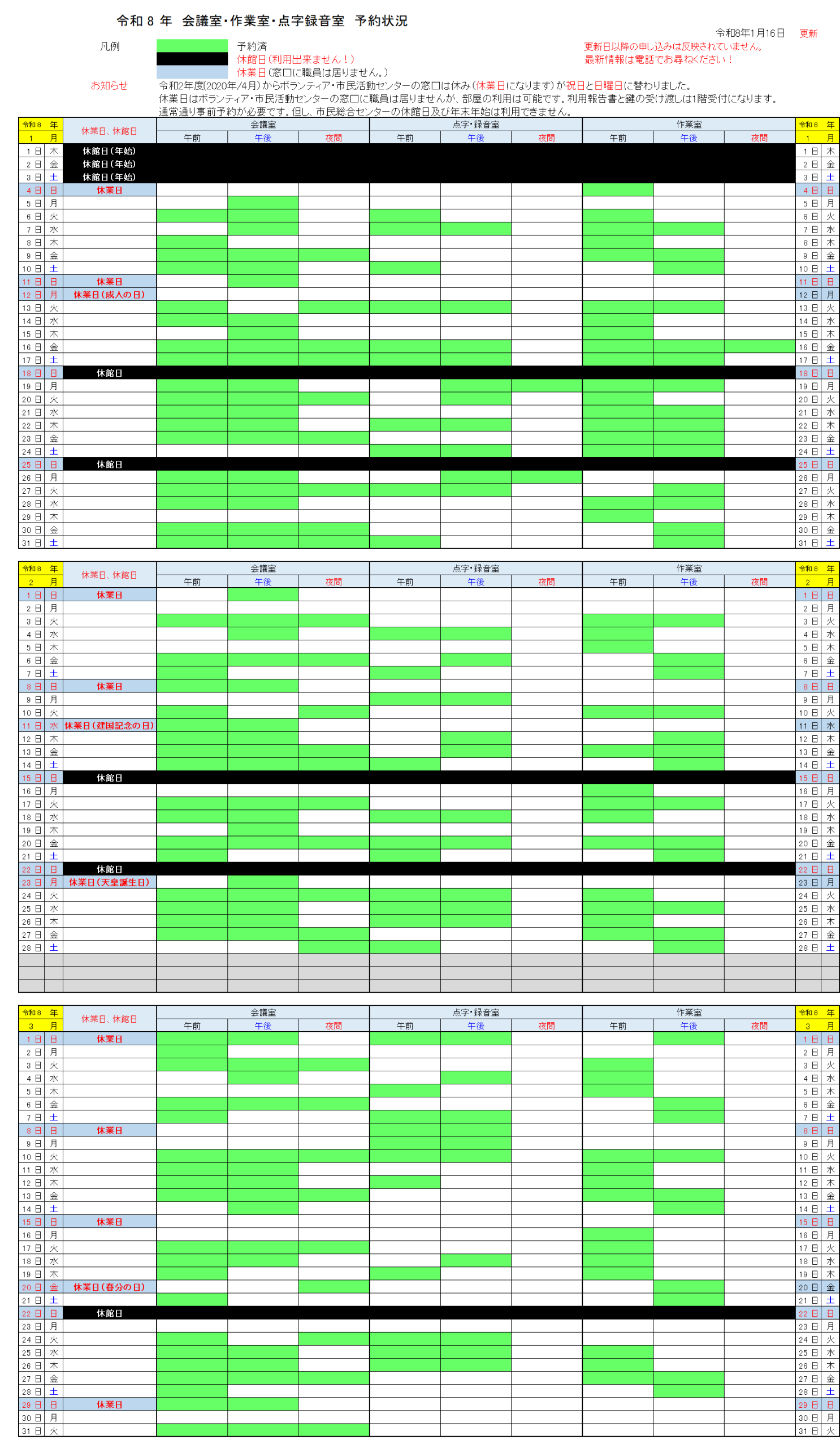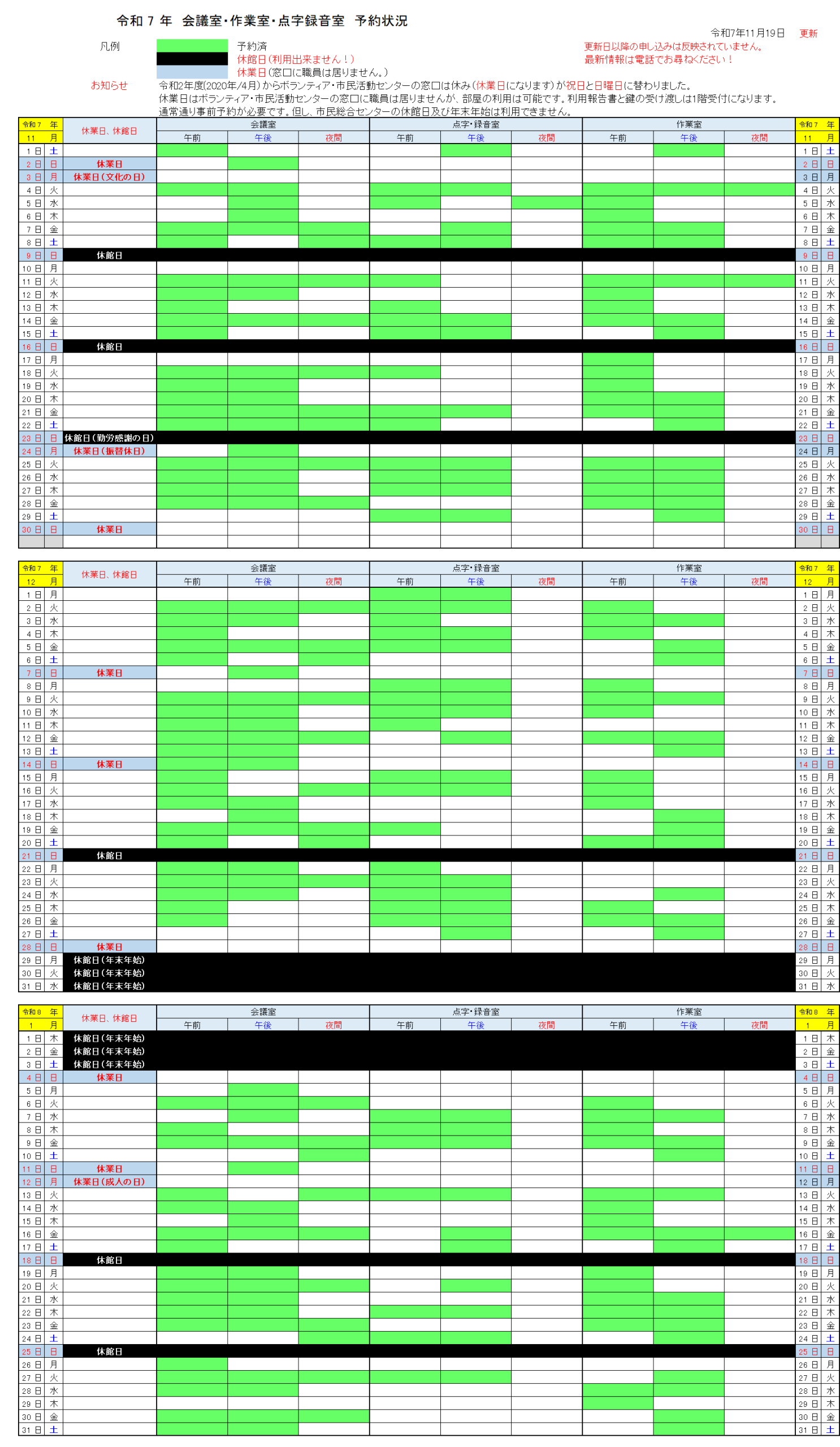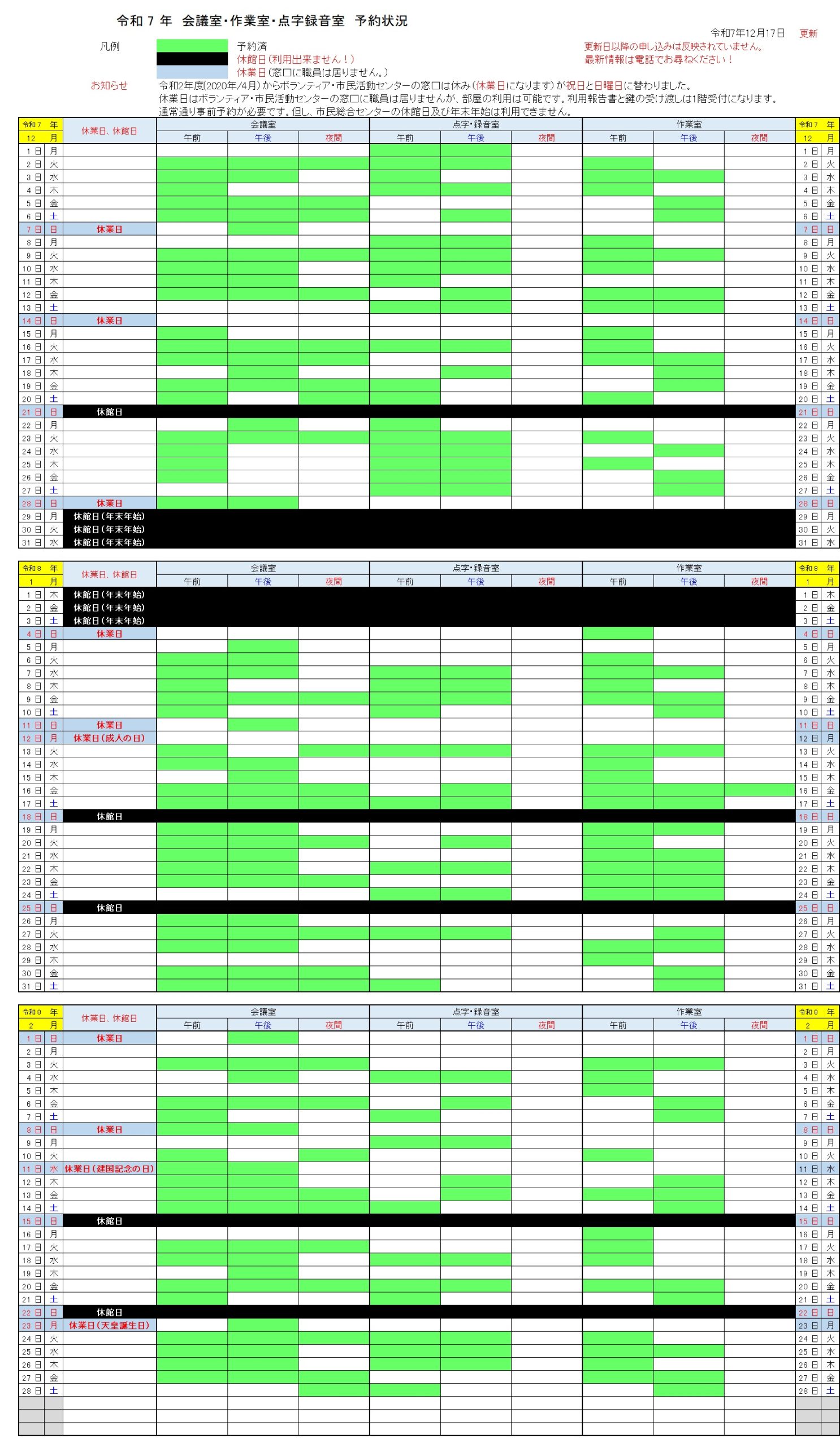 会議室等の予約状況